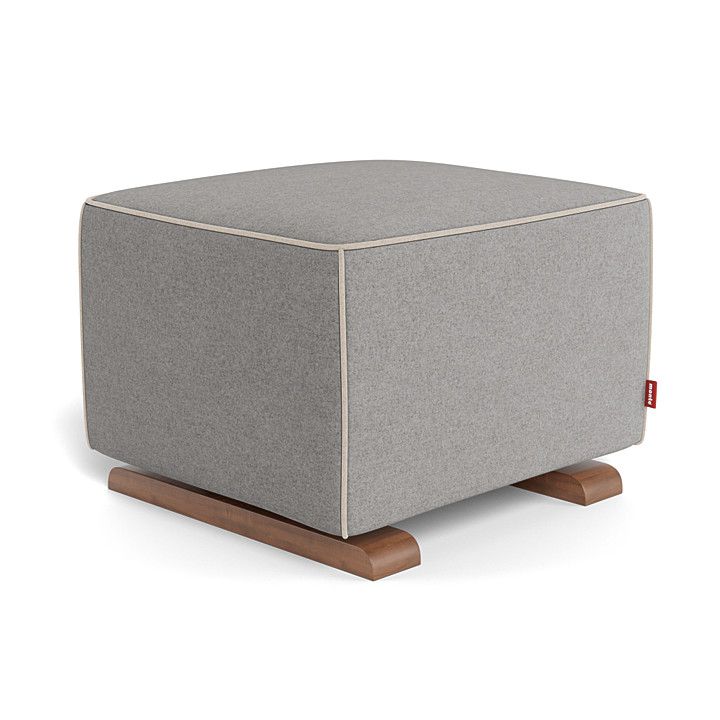 Monte Design Luca Ottoman - Walnut Base / Light Grey Italian Wool Fabric / Oatmeal Piping