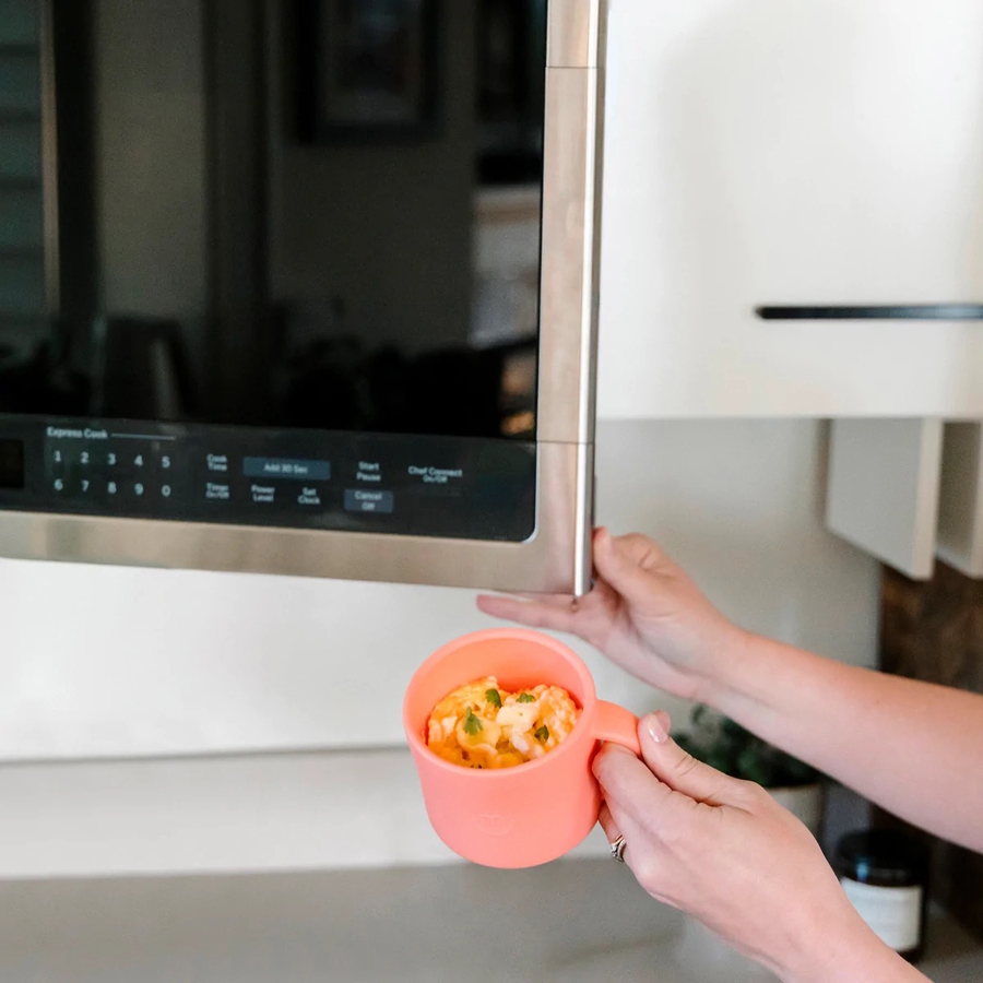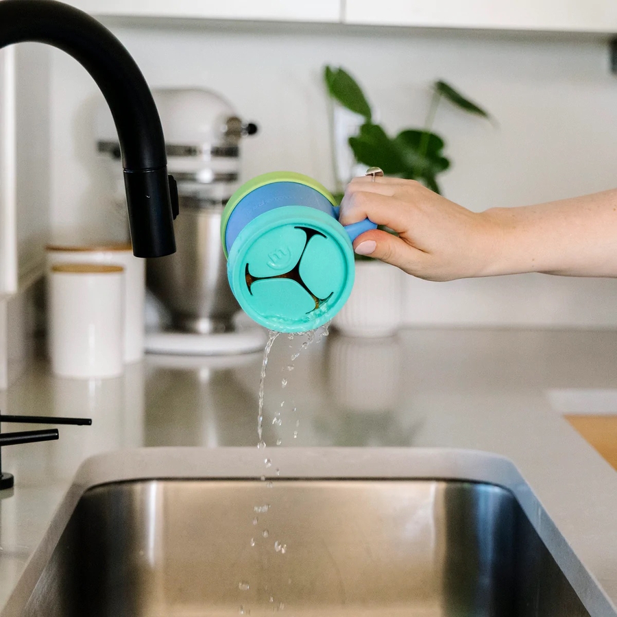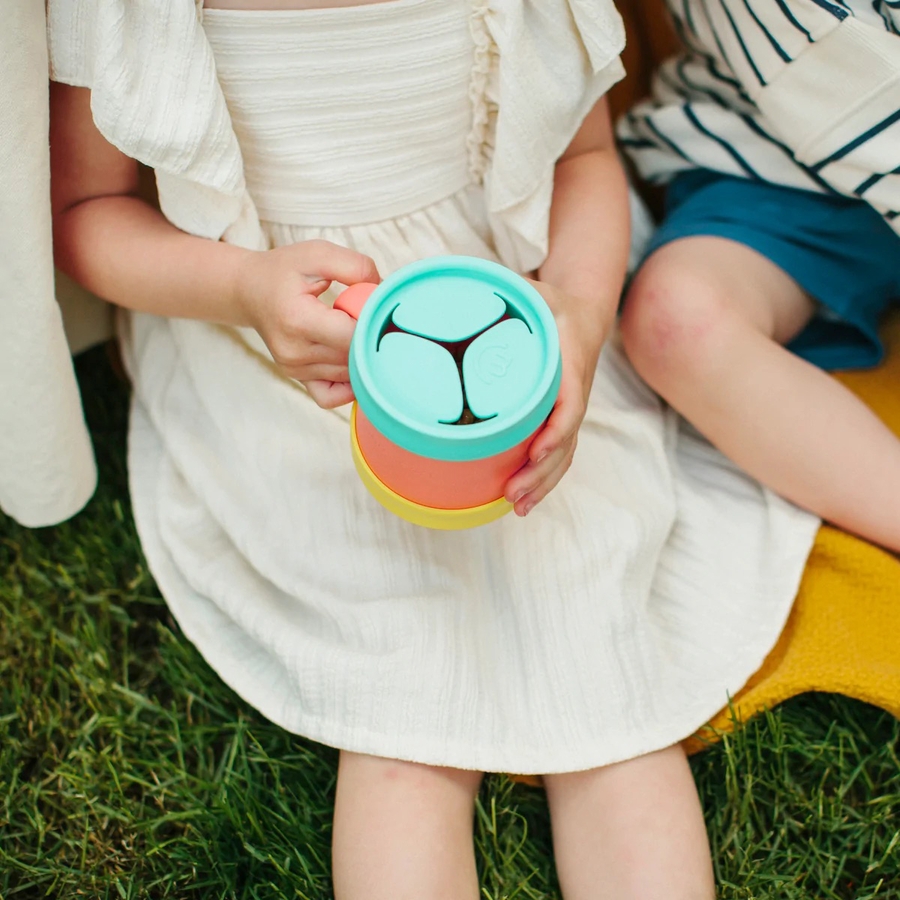 This all-in-one toddler snack cup + suction dining bowl + steamer is a baby gear essential for mealtime at home or on-the-go. The top lid keeps snacks fresh, reverses as a suction base to avoid spills and stacks to morepeas™ cups and bowls. The spill-proof snack lid has a soft opening for little hands, helping babies and toddlers self-feed. It can also be used to quickly steam and serve veggies, just microwave for 1-2 minutes! Designed with an easy grip handle, this snack cup is a must-have for busy toddlers and parents.