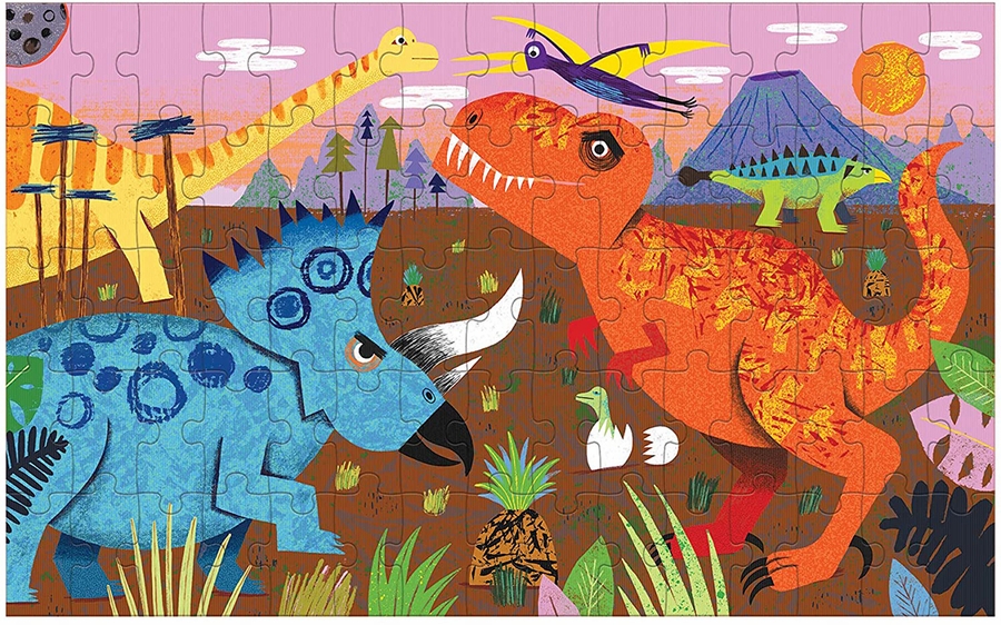 The Dinosaurs Roar! 75 Piece Lenticular Puzzle from Mudpuppy is an exciting and innovative puzzle format that when put together has a wonderful picture that transforms and moves right before your eyes. See dinosaurs transform into their skeletons! Mudpuppy puzzles are packaged in matte-finish sturdy boxes, perfect for gifting, reuse, and storage.