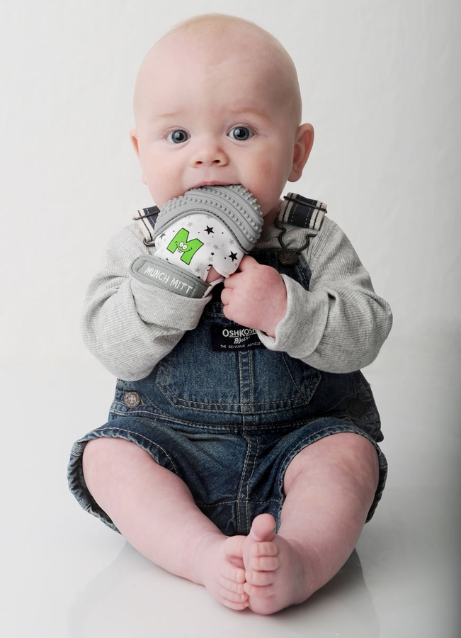 A convenient wearable teether from 3-7 months. Can be used up to 12 months of age, but is generally used as a standard soft hand-held teether from 7-12 months (once babies dexterity kicks in). Strap can be used to affix to a toy tether or car seat/stroller strap for convenience.