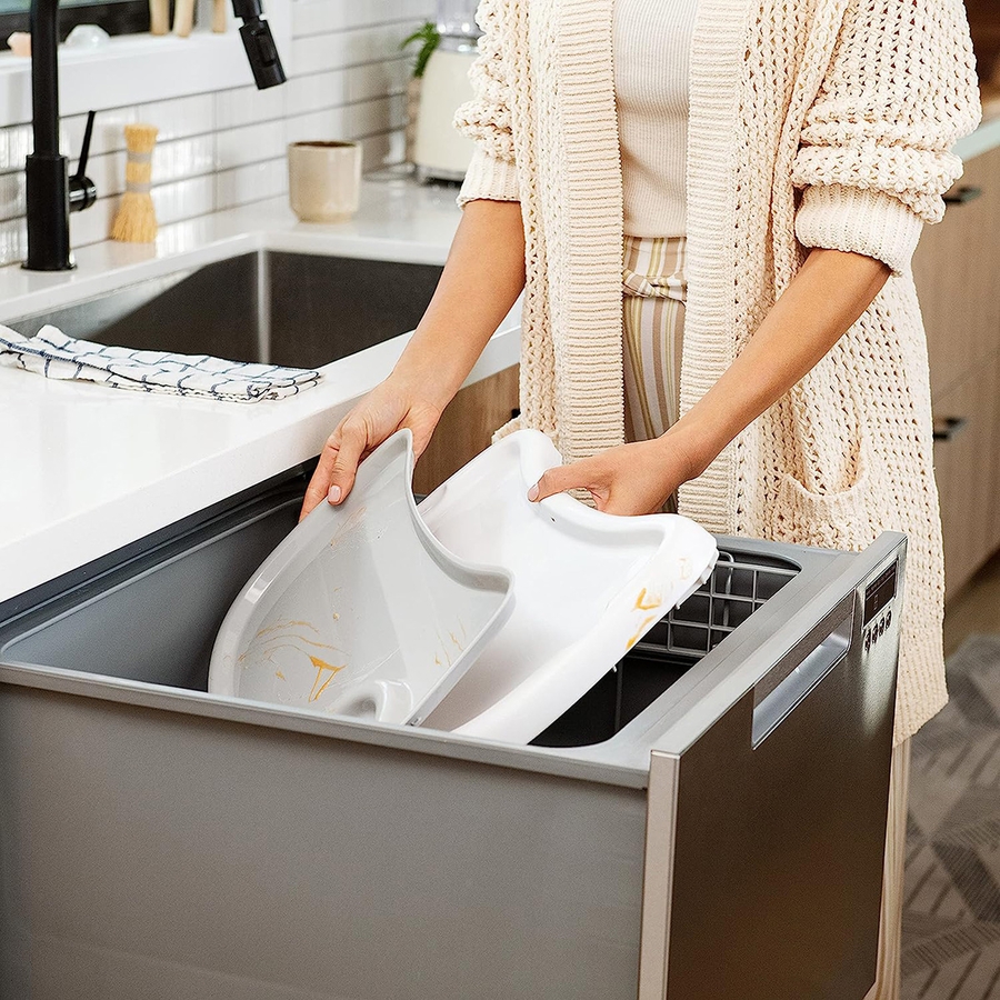 - EASY TO CLEAN – smooth, easily wipeable surfaces are free of nooks and crannies to minimize mealtime messes and spills. Removable tray and tray insert are dishwasher-safe for quick, effortless cleaning.