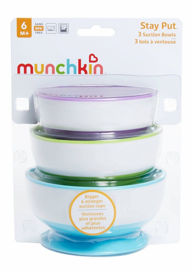 Let's face it. Toddlers can get a little rambunctious at dinner time (make that all the time). But you no longer have to duck for cover from a flying bowl of macaroni & cheese. Minimize unnecessary messes with our convenient three-pack of Stay Put suction bowls. The strong suction base will adhere to most surfaces, and the quick-release tab makes removal easy for adults. Microwave and top-rack dishwasher safe, food prep and clean up is easy and quick, too. Now if only you could keep your toddler in place so easily!