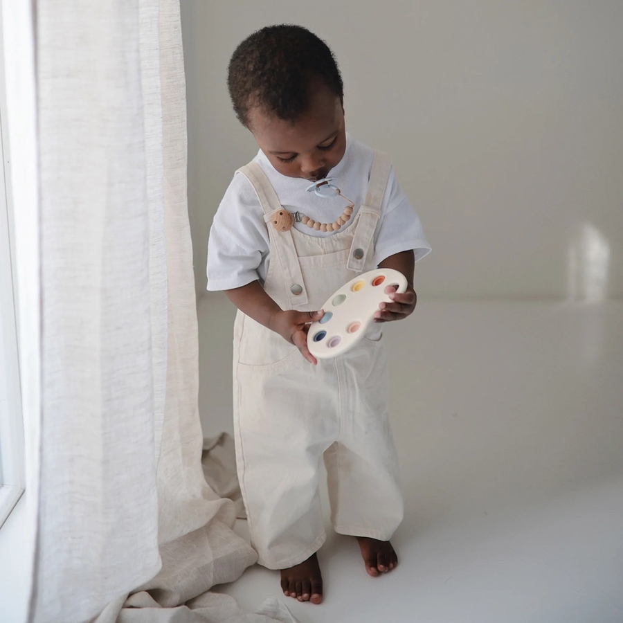 Made with little hands in mind, our paint palette press toy encourages sensory exploration and the development of fine motor skills with its simple design and soft colors. Featuring food grade silicone and a BPA-free plastic frame, children will tap into learning as they press the bubbles and hear a gentle pop.
