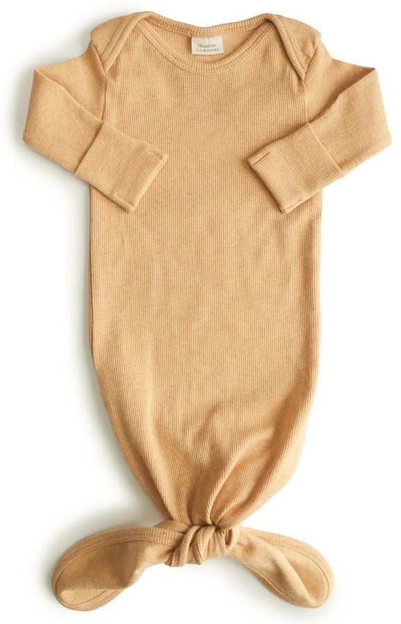 Mushie Ribbed Knotted Baby Gown - Mustard Melange