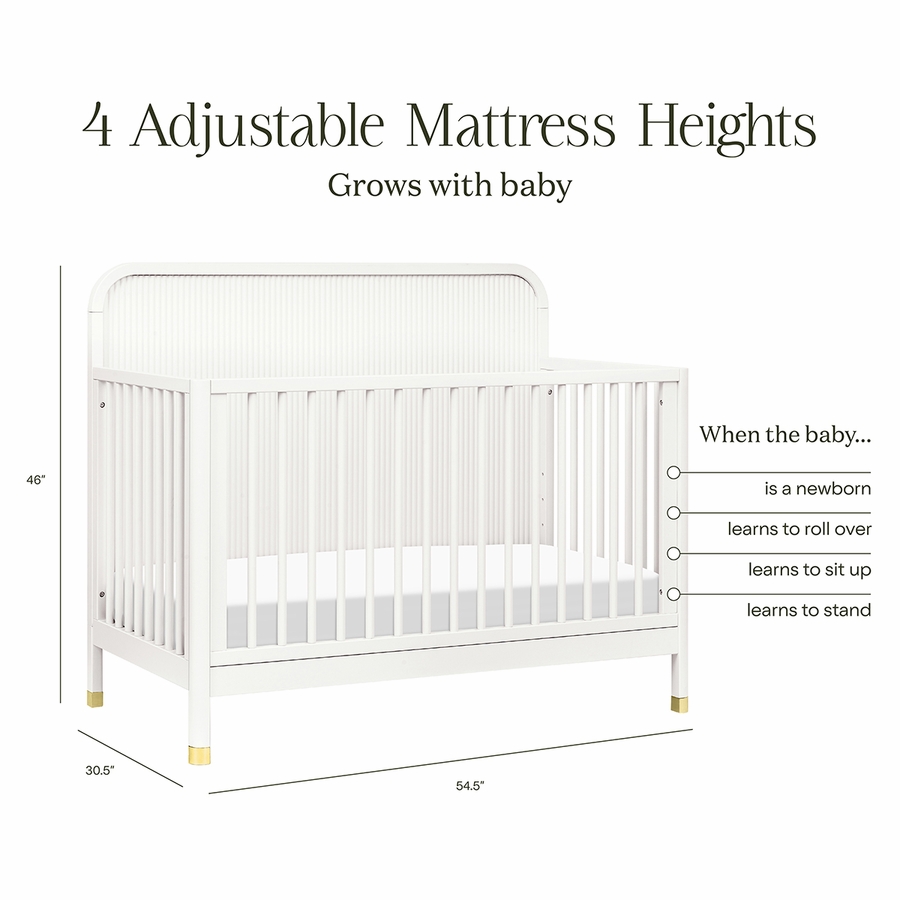 - GROWS WITH BABY: Our cribs have 4 adjustable mattress positions to help transition as your baby grows and develops from newborn to toddler. Easily lower the mattress position as your baby begins to sit, pull up, and stand.