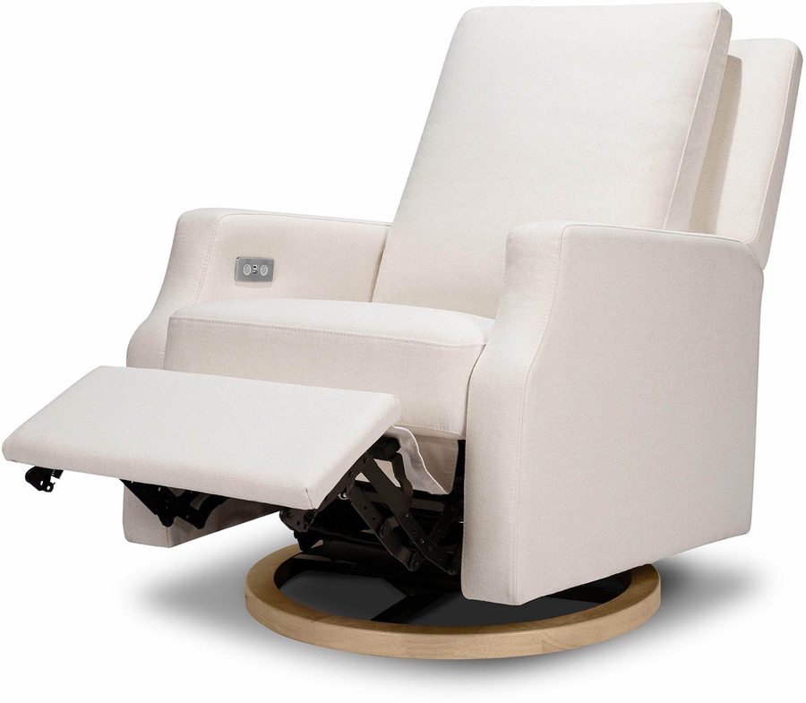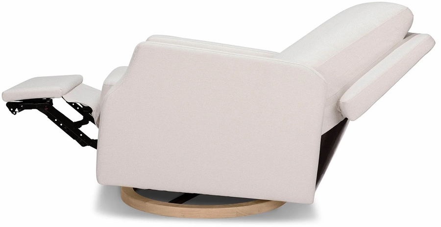 The Crewe Recliner blends form and function with its crisp, contemporary design and comfortable seat. Its smooth, back-and-forth gliding motion helps you rock your baby to sleep with ease, while the plush back cushion, electronic recline mechanism, and convenient swivel create an inviting repose for both you and your baby.