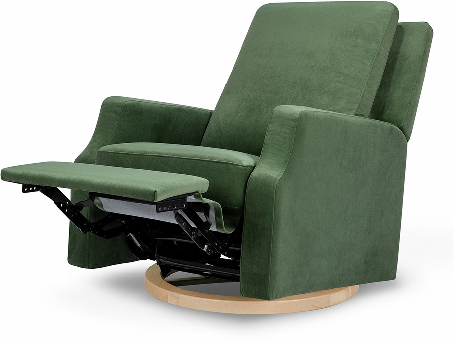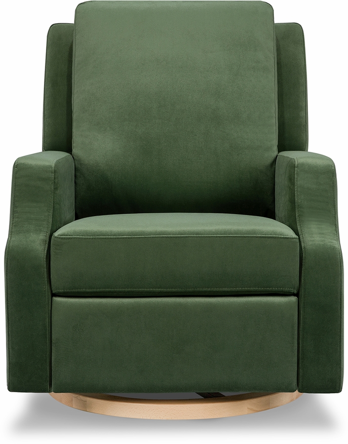 The Crewe Recliner blends form and function with its crisp, contemporary design and comfortable seat. Its smooth, back-and-forth gliding motion helps you rock your baby to sleep with ease, while the plush back cushion, hidden recline mechanism, and convenient swivel create an inviting repose for both you and your baby.