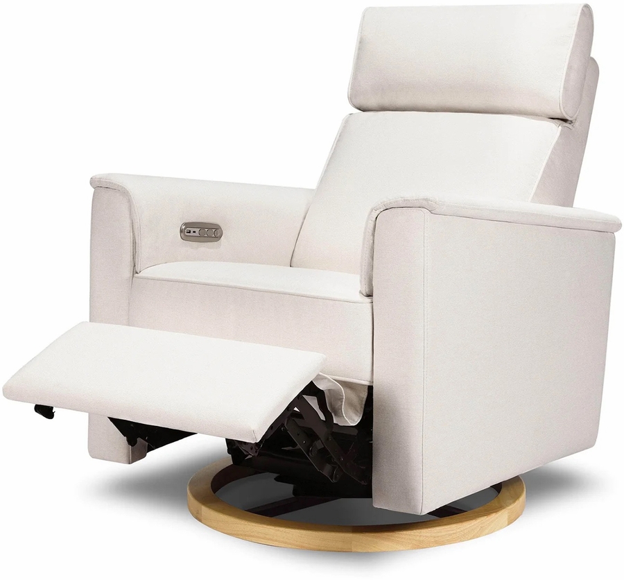 Monogram by Namesake Willa Electric Glider Recliner w/USB - Performance Cream Eco-Weave w/Light Wood Base