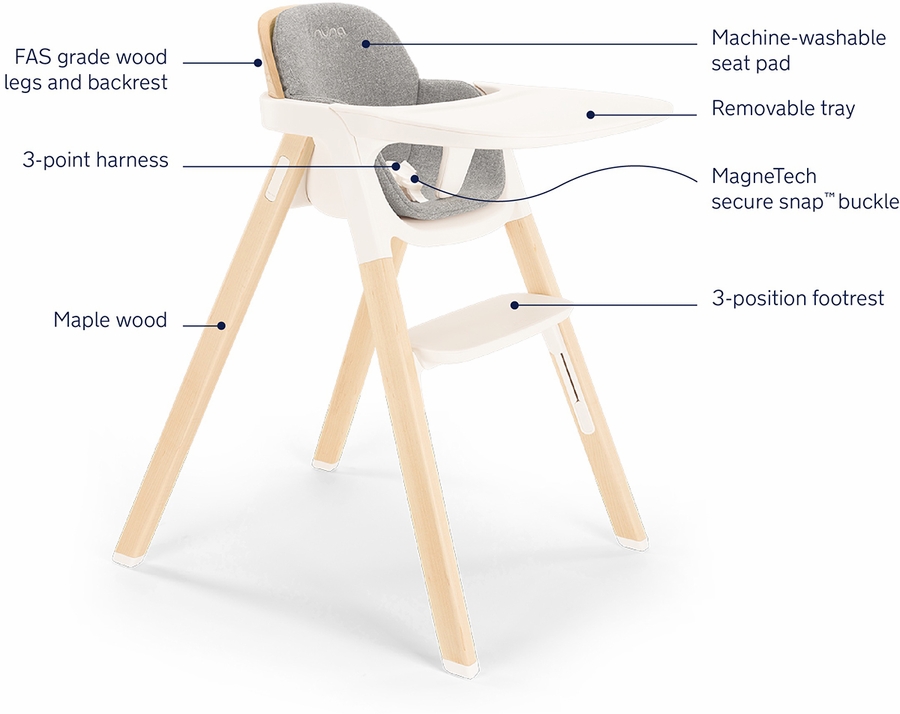 Picture this: sleek lines, warm wood accents, and an intuitive design that not only decorates your dining space with an heirloom furniture appeal but beautifully integrates baby into the heart of your shared family meals.