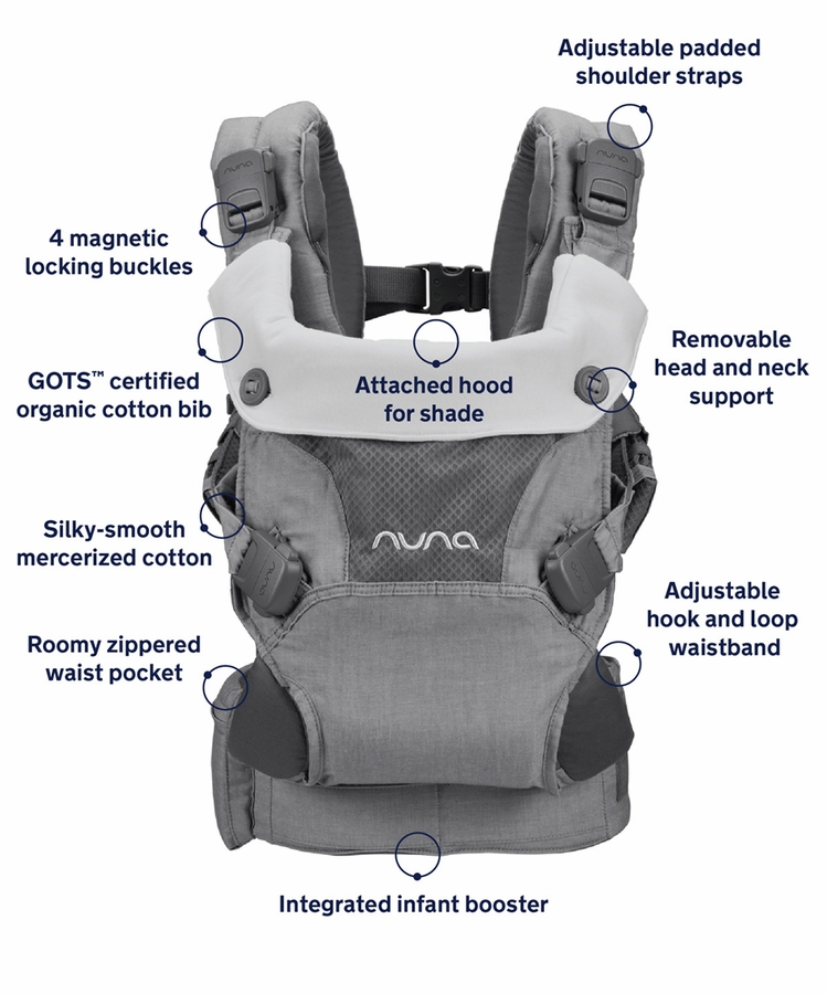 • 4-in-1 - Four carry positions that encourage healthy hip and spine development: Newborn mode, Facing in, Facing out, Back carry