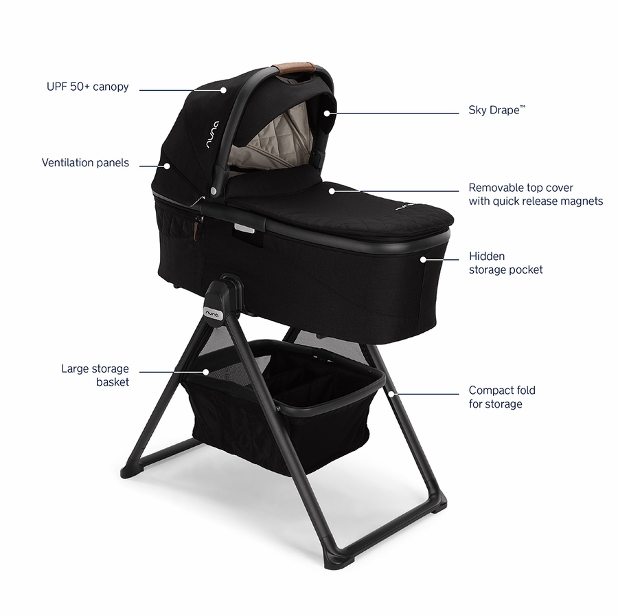 The Nuna DEMI Grow Bassinet + Stand provide a safe, sleek, and convenient space for your little one to rest, both on-the-go and at home. The DEMI Grow Bassinet attaches effortlessly to your stroller and to the included DEMI Grow Bassinet Stand.