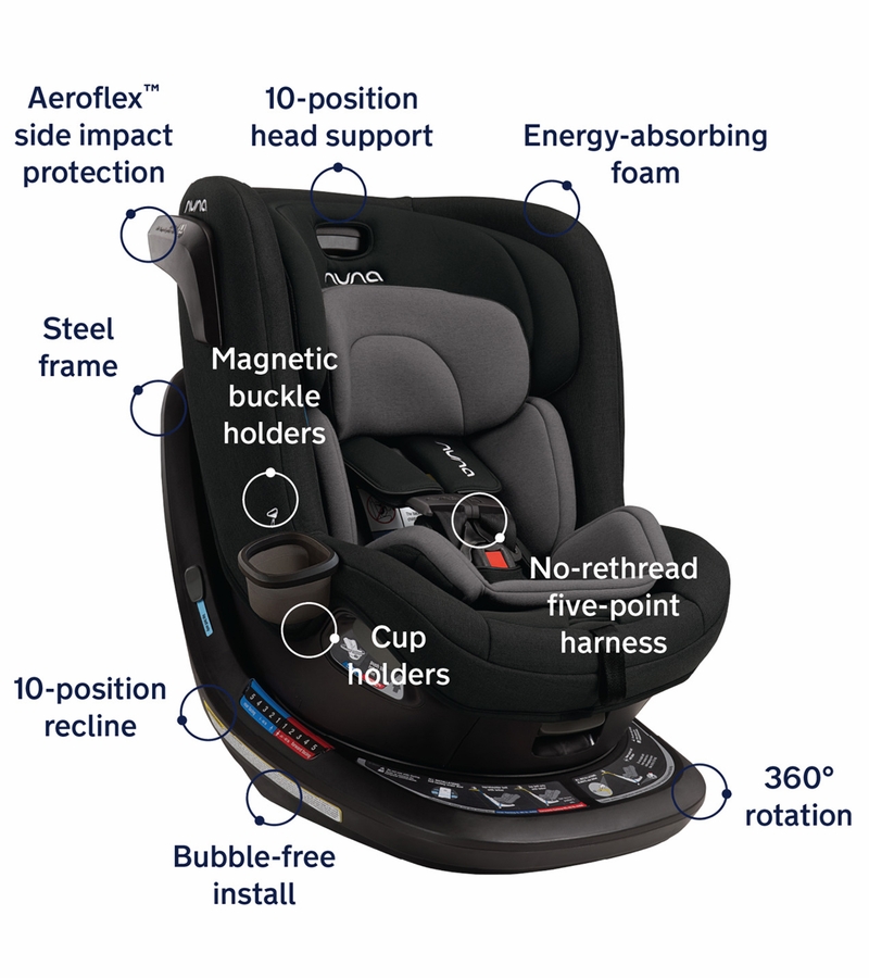 The Nuna REVV rotating convertible car seat is ready to revolutionize your travel experience. One simple install then rotate the seat 360° effortlessly for a stress-free easy-in, easy-out between adventures. The REVV converts from a rear to forward-facing car seat as your little one grows from newborn up to 40 pounds. The sleek lines provide a stylish look for you, while the luxurious fabrics and ventilation provide a comfortable ride for them. REVV provides security with Steel Strength Technology™, side impact protection, and a ten-position, bubble-free recline for snug and secure comfort. REVV is the stress-free rotating seat of your dreams.
