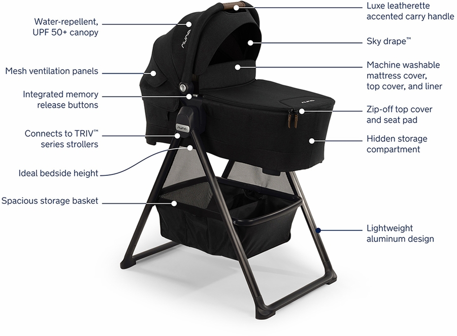 Soft and snug for day and night sleeping, Nuna's LYTL bassinet with stand keeps your baby close during those tender early months. Nighttime feedings become shared secrets, and every dawn creates a newfound connection.