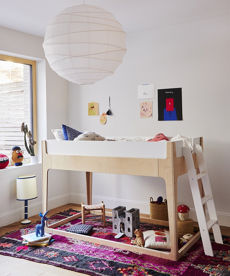 - As a loft bed with ladder, children ages 6+ can sleep on the top bunk, with either a play space or a floor-level mattress below, and