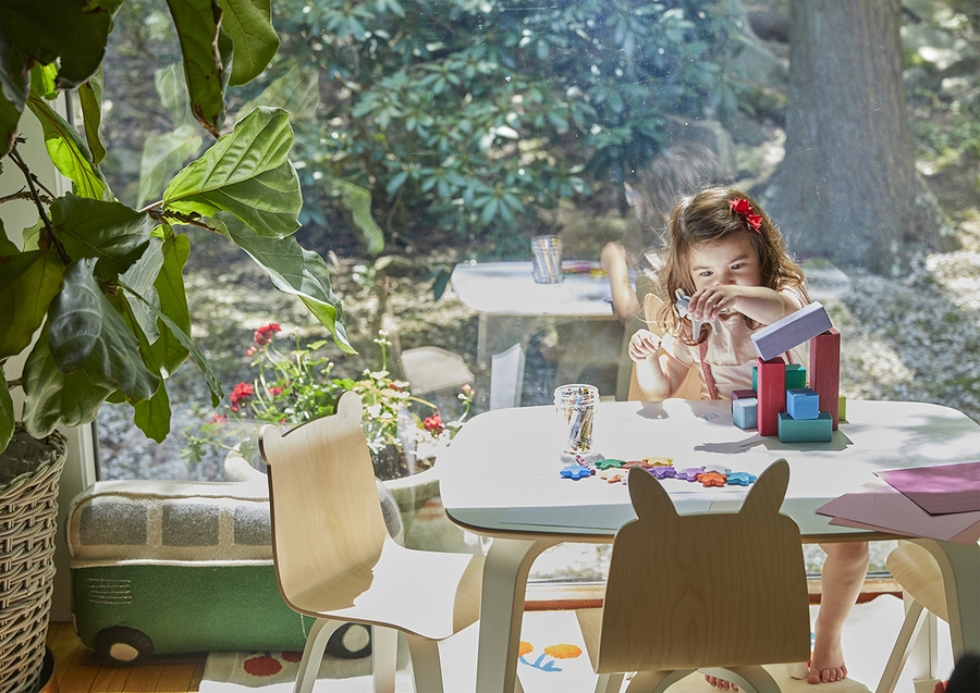 These adorable bent plywood chairs are sold in sets of two. Fitting perfectly with the Oeuf play table, they are sure to inspire a bit of extra fun while your child creates, snacks, or reads in their very own, kid-sized chair.