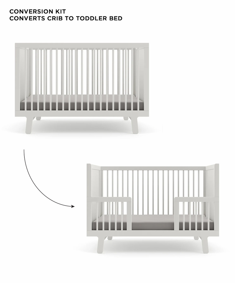 If you already own the Oeuf Sparrow crib, the conversion kit is a great way to convert it into a stylish toddler bed. The toddler bed reinforces a child’s sense of independence by allowing them to climb in and out on their own. The cozy size, low mattress and side rails give your tot a sense of security and prevent night-time falls. Simply remove one of the larger sized panels from the Sparrow crib and replace it with the Sparrow Toddler Bed panel for a familiar and comfortable space to fit your growing child's needs.