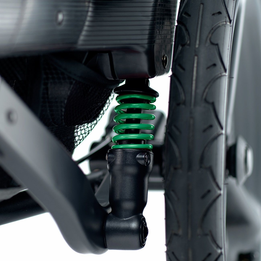 - Shock absorbing suspension, and sturdy, air-filled tires provide the ultimate sport performance