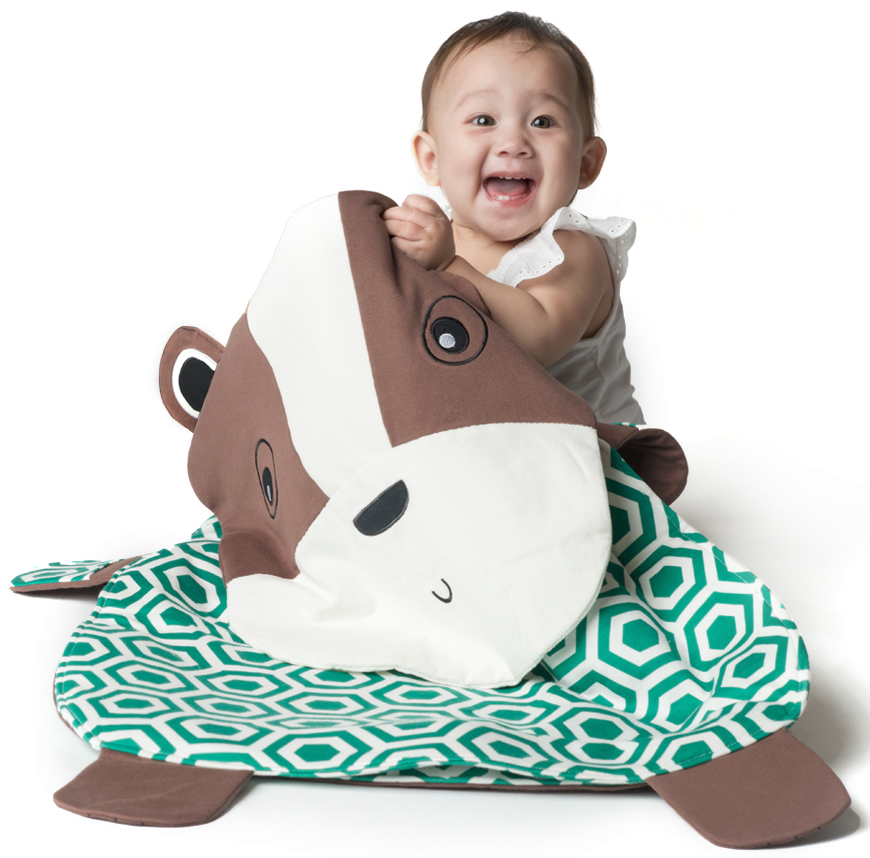 • Works as a great stroller blanket. Foxey’s head fold over stroller bar to prevent blanket from slipping off.