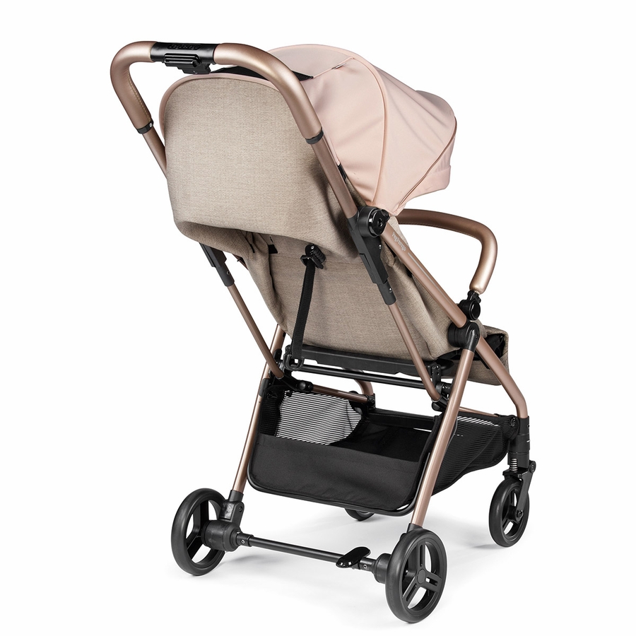 The stroller features selfie-worthy fashions, including a gold frame on the Graphic Gold and Mon Amour colors, and an eco-leather handlebar and bumper bar details.