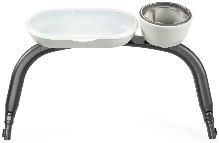 An easily removable front bar with cup holder, so that baby has everything to hand. The cup holder and food container are dishwasher safe.