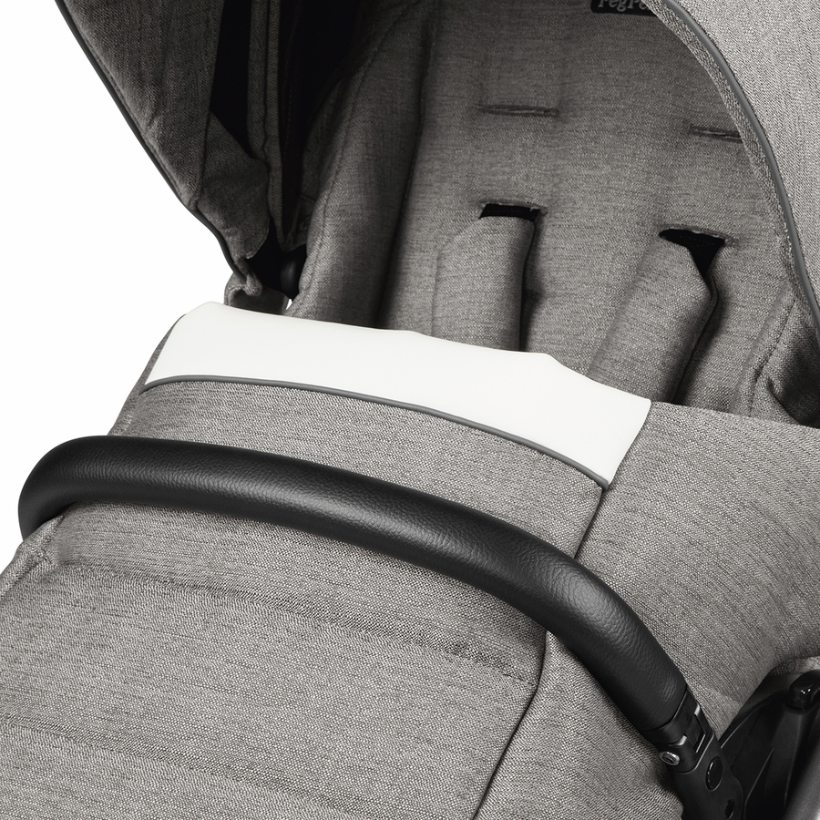 • Comfort and functionality are guaranteed by a roomy seat, a 5-point harness and an eco-leather front bar that opens and closes with ease