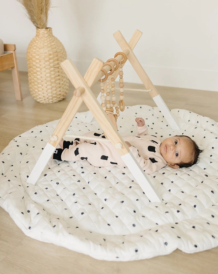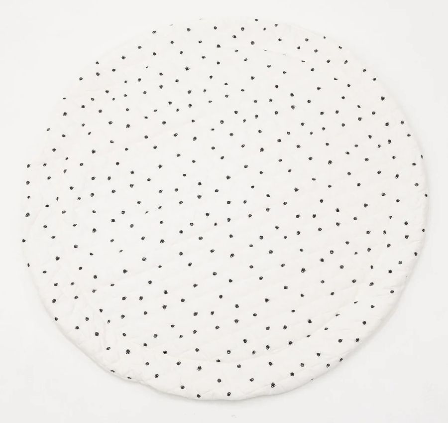 Poppyseed Play Extra Padded Round Play Mat - Black Squiggle Dot