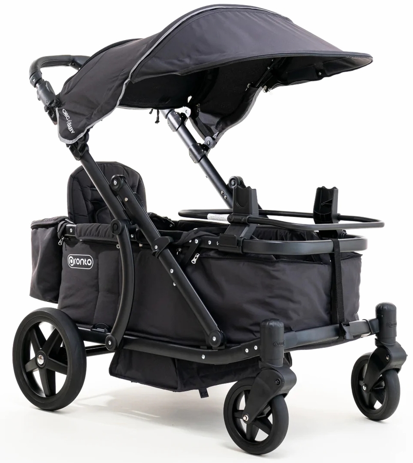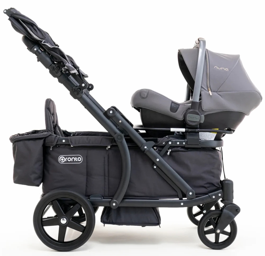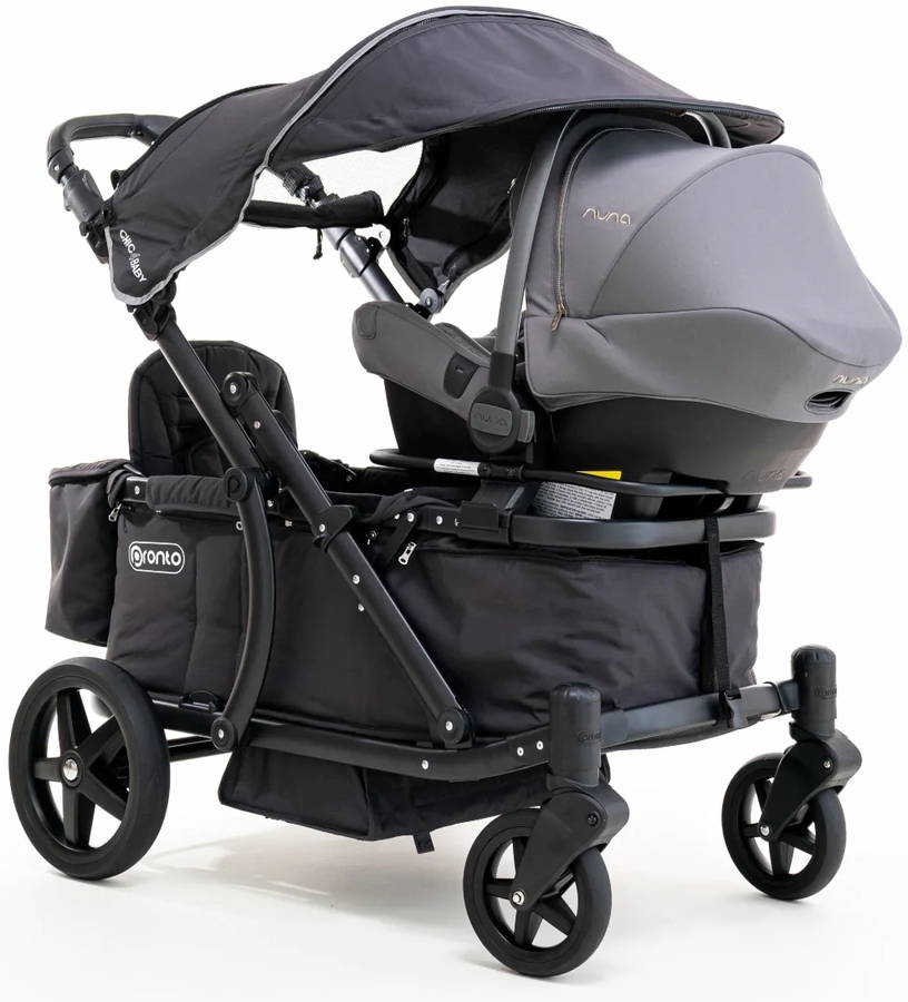 Car seat adapter allows infants to ride with sibling or alone with full sun coverage