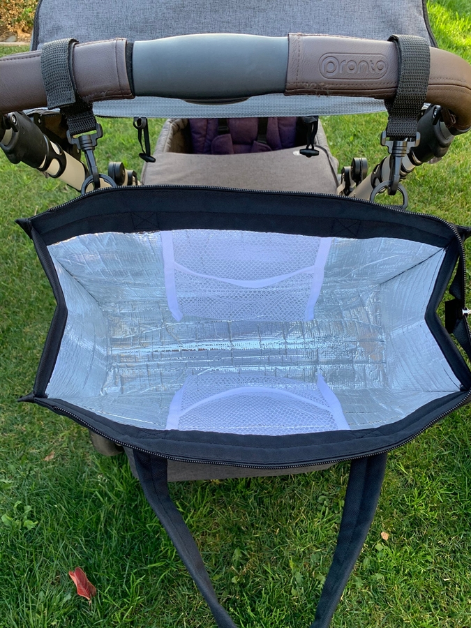 Spacious interior with removable velcro straps to attach to the handle bar.