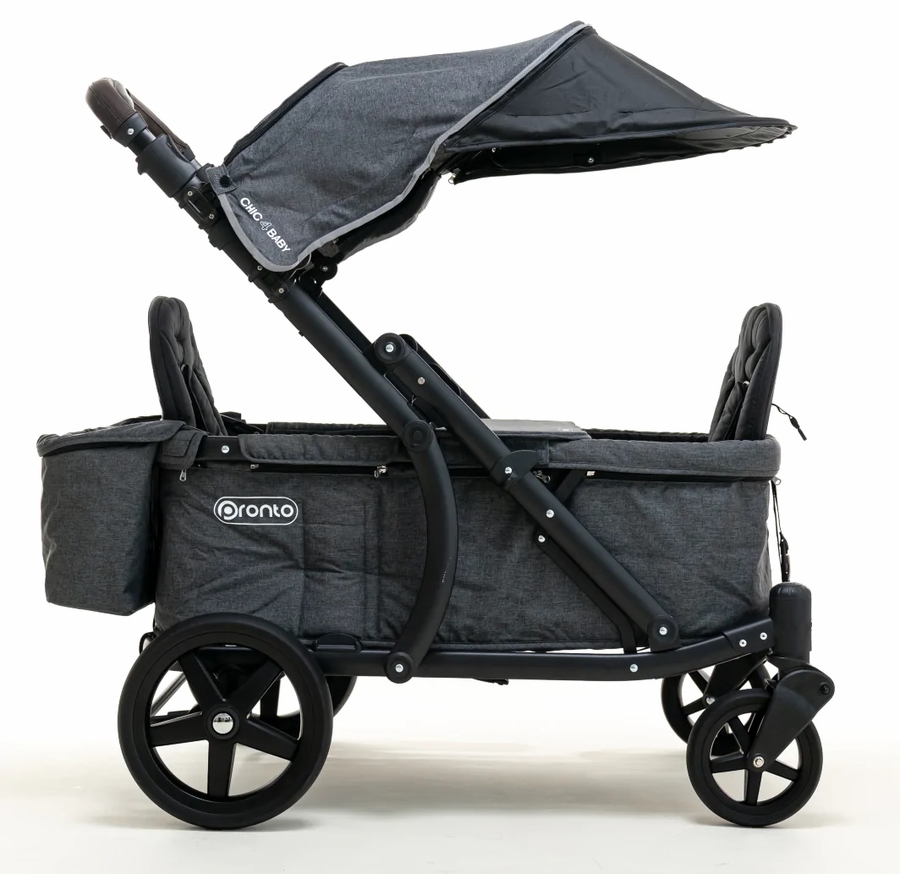 Pronto One (2 Seater) Stroller Wagon - Black Frame / Dark Grey