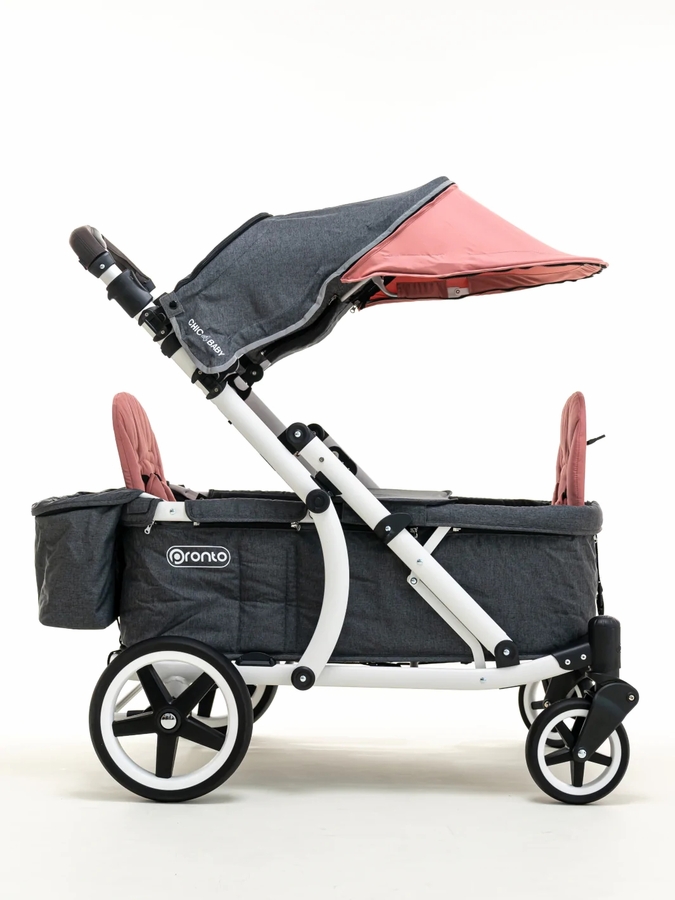 Pronto One (2 Seater) Stroller Wagon - White Frame / Ginger Pink