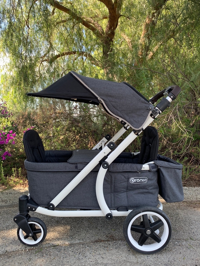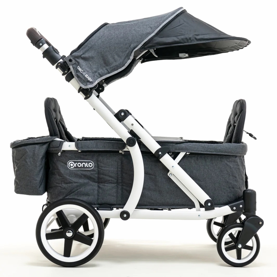 Pronto One (2 Seater) Stroller Wagon - White Frame / Dark Grey