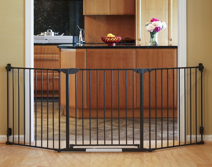 Not all childproofing needs come in standard sizes but you still deserve Qdos safety. The Construct-A-SafeGate will create a safe space in almost any situation ? around fireplaces, stairwells, large doorways ? you are only limited by your imagination. Two wide sections and a door are included and will fit openings up to 82.5?. Additional sections and doors are available so you can build what your home needs, even create a freestanding enclosure. Knowing the entire system meets the toughest European Safety Standards as well as the US and Canadian Standards will give you peace of mind.