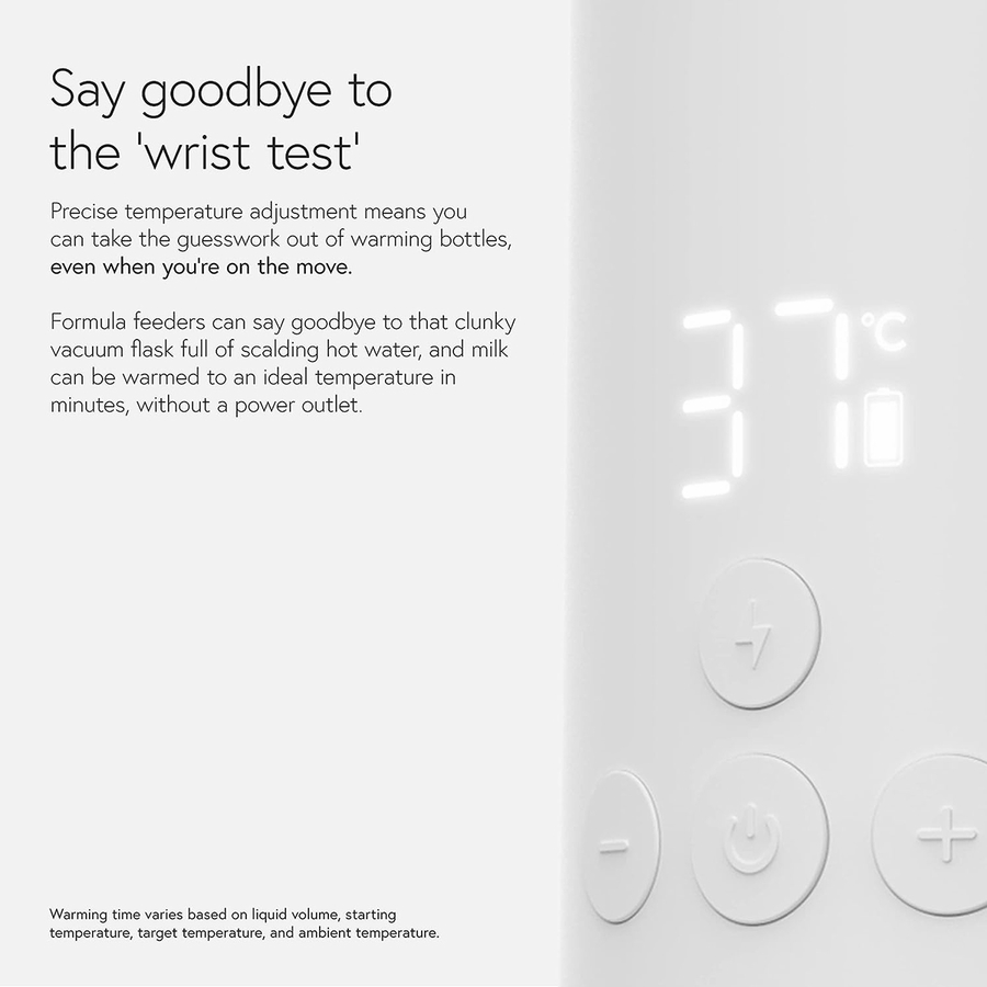 The BuubiBottle Smart Portable Milk Warmer features versatile smart temperature control to warm milk or water for formula safely and evenly on the go. Prepare bottles for your little one at the touch of a button with real-time temperature display, large battery capacity and durable Tritan™ construction.