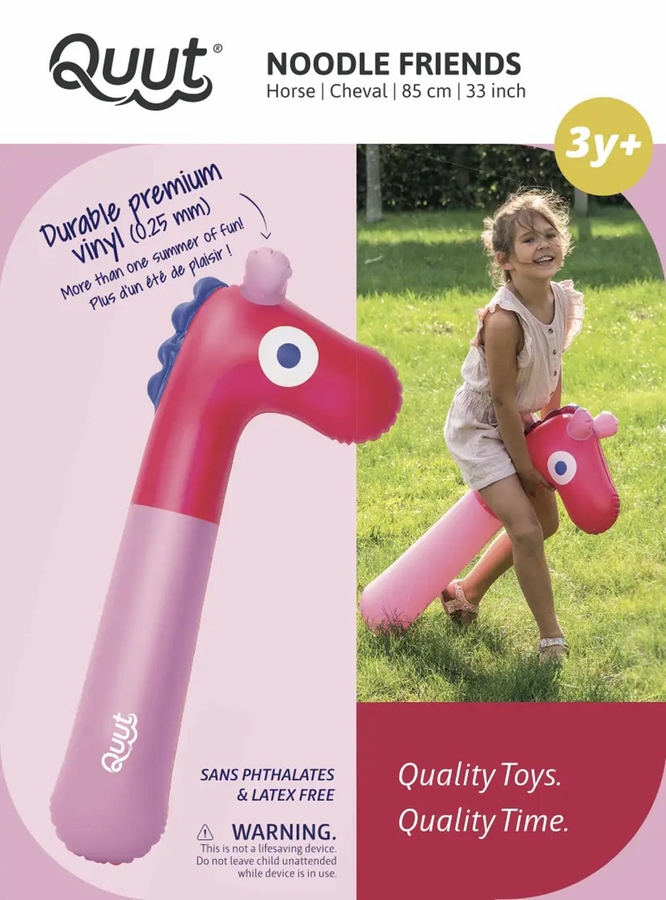 Hobby horse or water noodle: everything is possible with our new inflatable friends. Let your kid’s imagination run wild! Choose from our 3 designs: Dino, horse or giraffe.