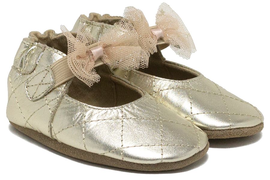 The Winnie Soft Soles in Gold are practical, pretty, and comfortable—just as baby shoes should be! Plus, these gold toddler shoes strike a perfect balance between functionality that supports a beginner walker's foot and the timeless look of a classic Mary Jane. And we can't get enough of the precious tulle bow atop the elastic strap. Done in metallic gold, these are bound to make any ensemble glisten.