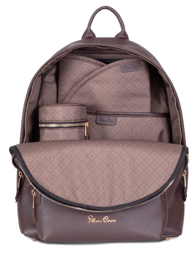 Stroll in style with Silver Cross' Dune/Reef Diaper Bag. Made of Vegan Leather & to match both Dune and Reef strollers. featuring 3-D sculpted fabric & rose gold detailing. Crafted from Vegan Leather to match both Dune and Reef strollers, this diaper bag is practical and perfect for mom or dad. The back-pack design leaves you handsfree to navigate your day. A changing mat and thermal bottle holder are included, with plenty of space to store those baby essentials.