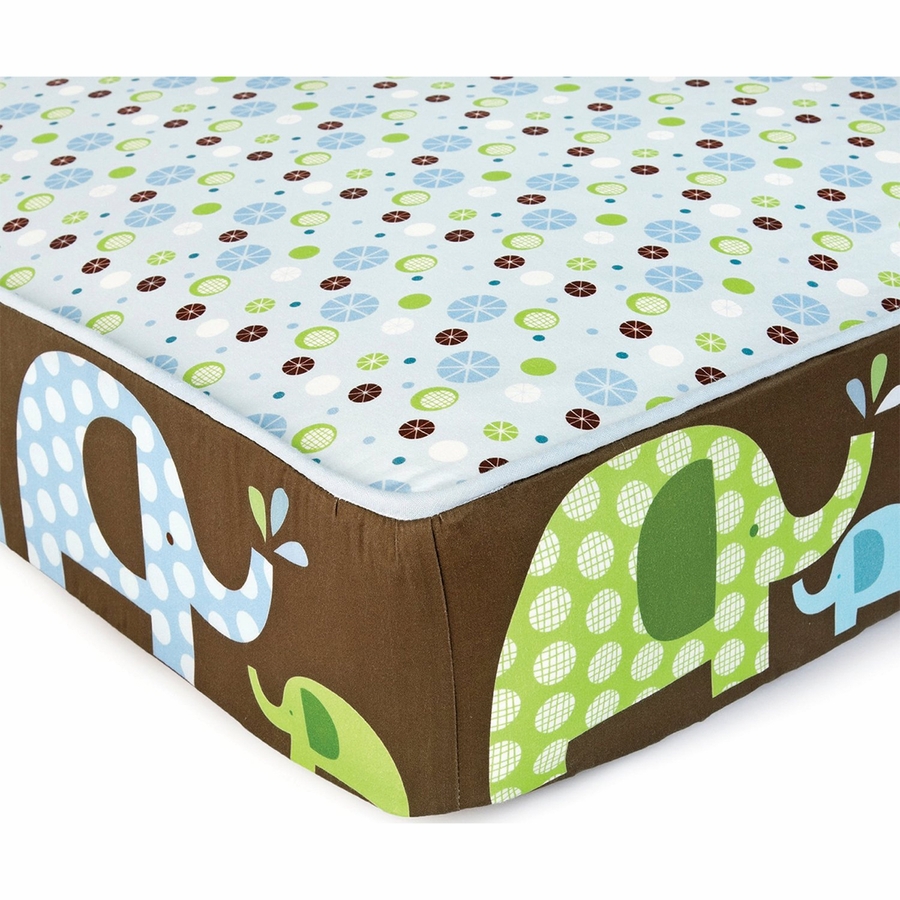This adorable family adds whimsy to baby’s crib. Our bumper-free 4-pc bedding set-without a bumper and features our patent-pending Complete Sheet?. This ?engineered? sheet offers bold graphics around the sides of the mattress with a contrasting pattern on top of the sheet. Also included is our Airflow wearable blanket, linen crib skirt and the softest nursery blanket.