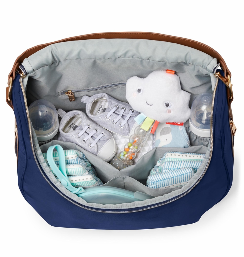 I love the look of this and the material was really nice, seemed like it would be easy to wipe away any mess. I did have to return it though, I knew it was going to be big, I wanted something big that would show all of my bags content. This is big but the shape just isn't right, once you pack it the bag loses it's shape and becomes fat/wide and becuase of how the closure is you can only stack so high. This bag sidn't give me what I wanted which is a huge bummer becuase it's so pretty and purse like.