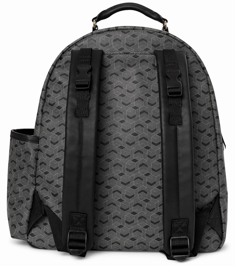 This bag is almost too attractive to be a diaper bag and probably was something else in a former life. It has a lot of space considering it's slim profile. There is a large main compartment with 2 small pockets inside, a pocket with a changing pad, 2 deep zippered compartments on the front, and I love that one bottle holder has a zipped compartment. The fabric looks like it can be easily washed off and will last a very long time. I originally ordered the very popular Forma bag which I returned because the slanted zippered area makes the bag bulky and the quilted fabric feels and looks cheap. I am very pleased with this choice.