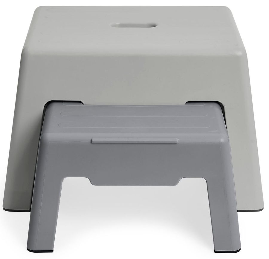 - Size (inches): Large step stool: 13.25W x 8.5H x 10.25D; Small step stool: 10.375W x 6H x 10.25D; (cm): Large: 33.7W x 21.6H x27.3D; Small: 26.4W x 15.2H x 26D
