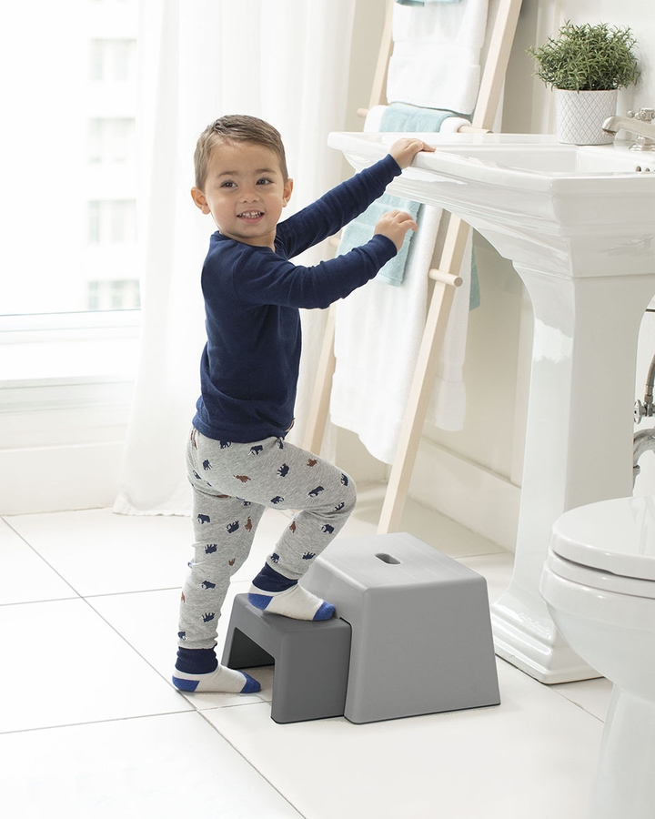 A big-kid boost to toddler independence, our 2-in-1 step stool makes everything easier for kids to reach. Perfect at the bathroom sink and toilet for potty training, it’s also great as a kitchen helper and more. Use the space-saving nesting stools together as a stepped design for an easier climb, or separately.
