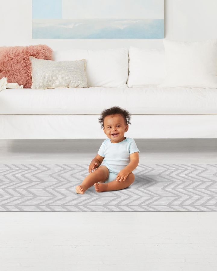 I purchased this mat because of the ability to easily wipe it clean, roll up for storage and also the ability to have two different designs depending on which side you wanted. The quality is amazing, it's very plush when you're standing on it and i love that there the colors are so contrasting and vibrant!