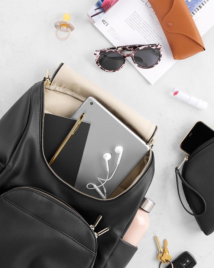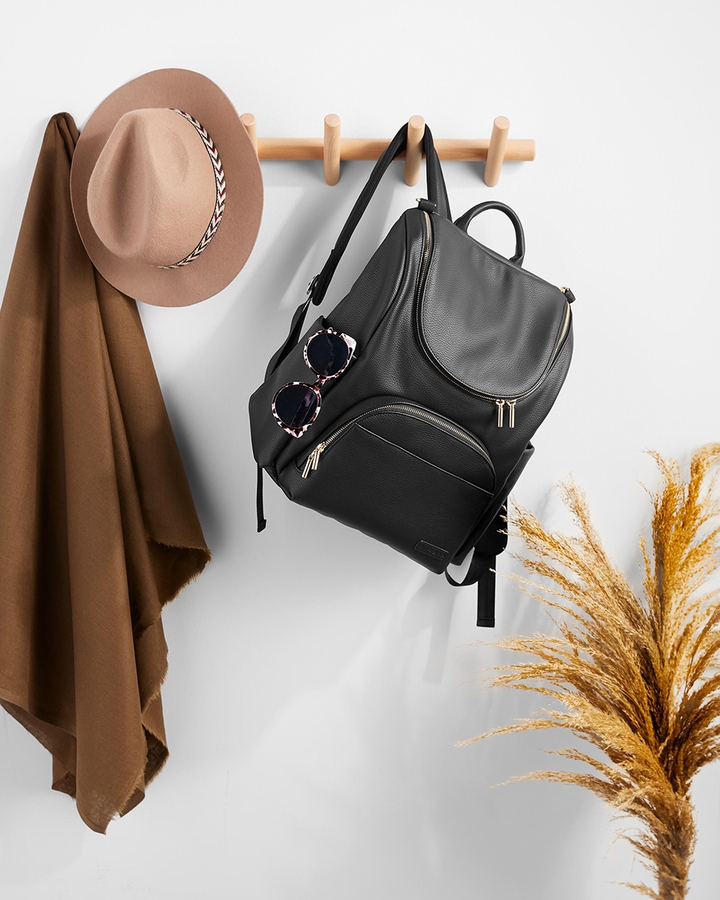 Meet the diaper backpack that does it all—every day of the week! Designed to check off all the boxes on your dream bag wish list, we combined ultimate function (check out all the included accessories!) with supple pebbled vegan leather for a luxe look that pivots seamlessly into life beyond baby. Roomy enough to hold all the essentials, the streamlined style features ten pockets, plus a matching clip-on wristlet pouch, sanitizer holder and pacifier pocket for quick and easy access.