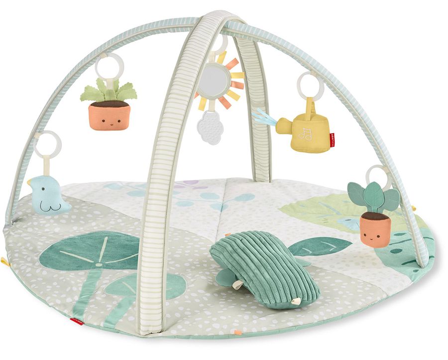 Introduce baby to all things green with our comfy garden-themed activity gym. Featuring a soft quilted mat with multiple textures, we also included a supportive cactus for tummy time play. Packed with 17-plus developmental activities, five adorable nature-inspired toys engage baby’s senses with music, sounds and more to explore.