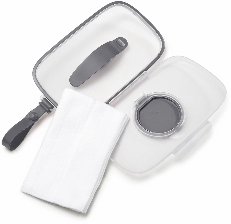 With a secure, wide opening and a moisture-stay seal, our baby wipes case is the answer to fresh wipes every time. Whether you drop it in your diaper bag or use the built-in strap to hang it on your stroller, it’s the perfect, go-anywhere solution.