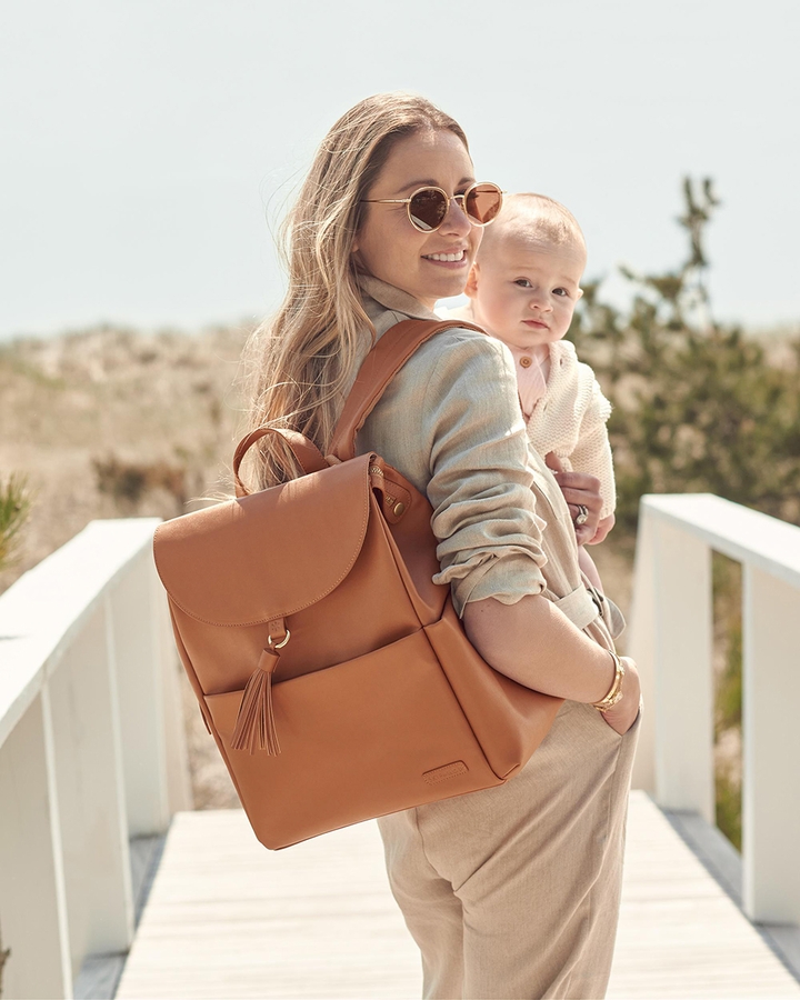 Meet the latest addition to our Greenwich Collection! Crafted in the same luxe vegan leather you love, this pack & grab must-have is loaded with easy-going style for everyday use. Featuring a top zip and magnetic flap closure with a tassel accent, we also included a hidden front pocket for easy access to parent essentials, plus built-in stroller straps, a changing pad and plenty of room for all your baby’s gear.