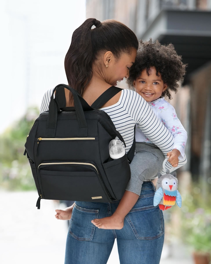 So exited to receive this bag,Love the bag. When I opened it I was nervous because I didn't want the magnet closure, Thank fully it was the zip closure. I used this for my toddler. I previously had the skip hop forma back pack, I can fit everything I packed in the forma and probably more. The side pockets are bigger than the forma. The inside is wider which makes it easier for me find stuff.