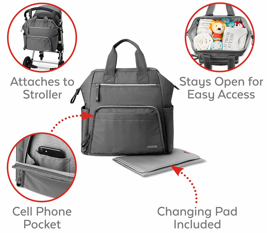Who has time to hunt through your jam-packed bag for diapers, snacks and other necessities? Not the busy moms we know. Our Mainframe Wide Open Diaper Backpack makes it easy to access everything that's packed inside thanks to a structured frame that opens wide—and stays put—for a clear view. An innovative combination of soft fabric and sleek structure, the sporty, lightweight design features a large main compartment with a secure zip closure, plus lots of pockets for essentials like your phone and water bottles. Easy-grab double top handles and adjustable backpack straps make this user-friendly look the ultimate in hands-free ease.