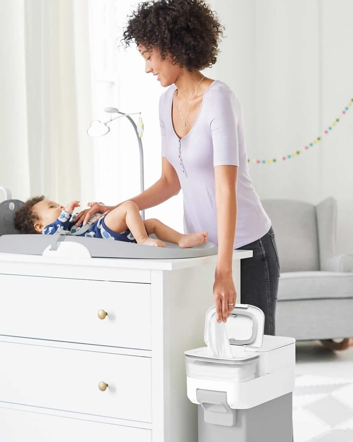 So... Disclaimer, I'm not a mom (but congrats to those of you who were blessed with the gift of children). I purchased this to store my baby wipes and it's amazeballs. Just like other Skip Hop products that I own, the product was well thought out on how to make a hectic (well, specifically those with child) a little less hectic. The clear tub helps to see how much wipes are left and the opening is nice and wide so you don't have to squeeze your fingers in there to get wipes. The seal really helps to keep the wipes nice and moist. I don't move the container all too much but it would help if there were small clips were added to the side so that if you grab it from the top it'll still stay put instead of opening up. I mean, I guess if you had to refill and your baby is sleeping the no clips helps being noiseless. But maybe adding notches on the side so people who want to clip it, can, might not be the most terrible idea. Overall though, great product that was well thought out.