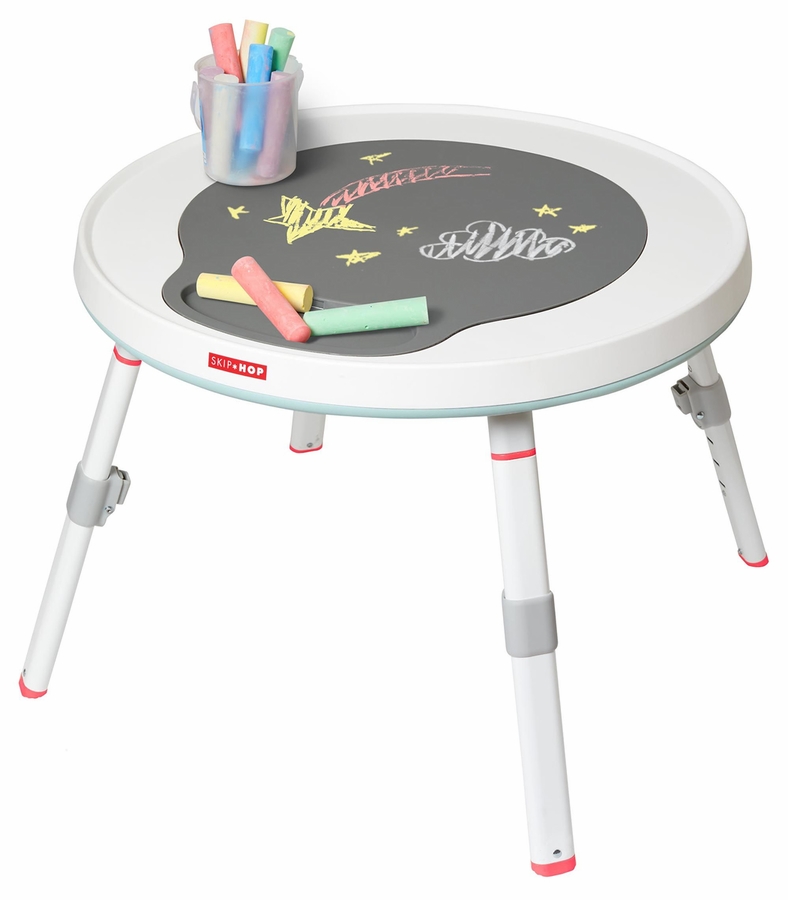 Converts to a play table with smooth plastic chalkboard surface